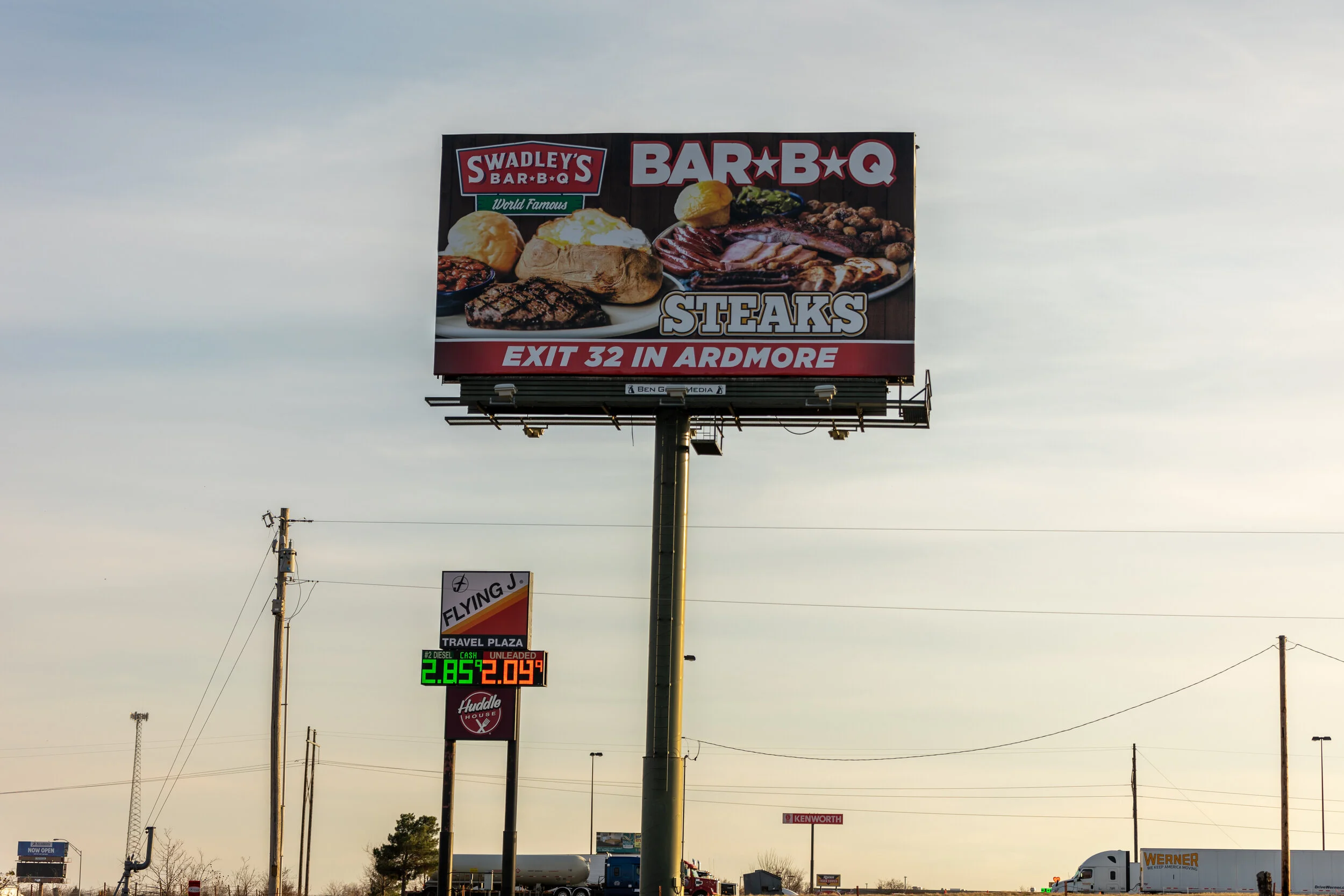 Located on the West side of I-35. This billboard is a back to back single board 10' x 32' with outstanding visibility. Also, this is an excellent location which is easily viewed by all traveling Ardmore's 12th Street corridor.